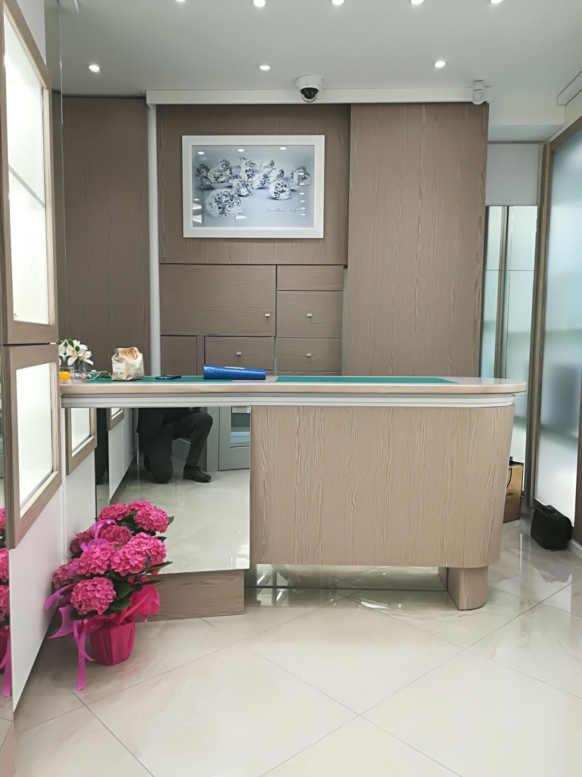 I nostri Tecnici hanno creato gli elementi d’arredo con strutture in Legno Multistrato e Nobilitato con finiture laccate. Inoltre, per motivi di sicurezza della gioielleria, le vetrine espositive sono state realizzate con telai fissi in ferro smaltato e vetri blindo,